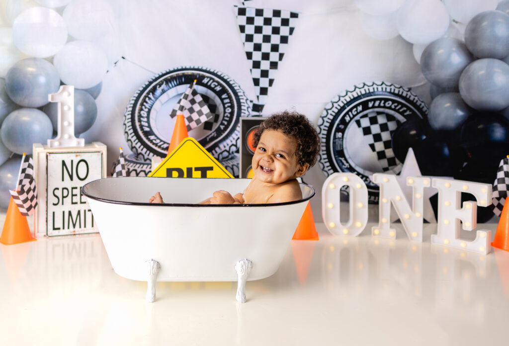 Your baby’s safety is always my top priority. I make sure the studio is a clean and comfortable space for little ones to explore and play during the cake smash photoshoot. All props, surfaces, and the tub are thoroughly sanitized before and after every session. I also choose sturdy props that are designed specifically with babies in mind.