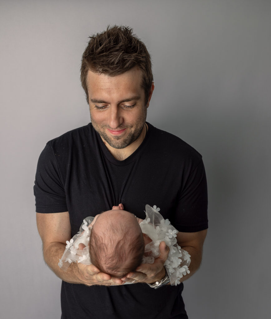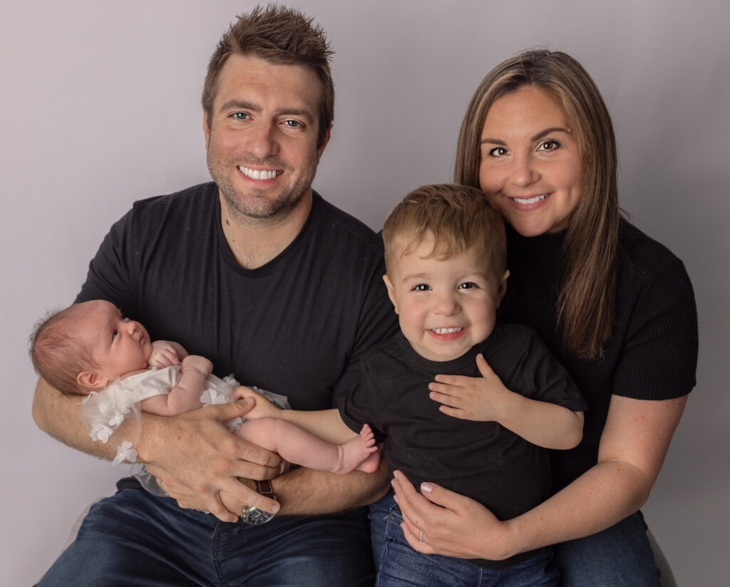 If siblings are two years or older, I like to start with their photos with the baby first. I keep these poses simple and focus on natural interaction, laughter, and connection — especially with young children. After that, we’ll move on to full family photos, followed by individual portraits of each parent with the baby.