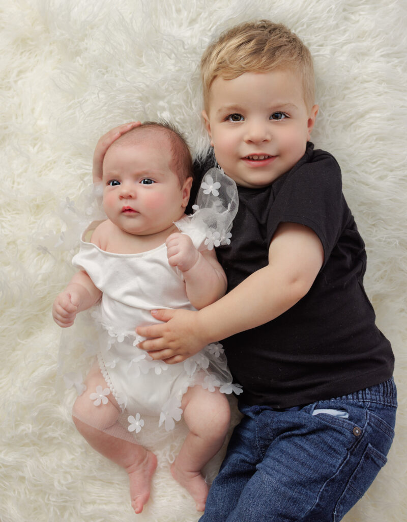 Once those images are complete, dad or another caregiver is welcome to take the siblings home (or out for a treat!) so we can focus on the posed newborn portion of the session without distractions.